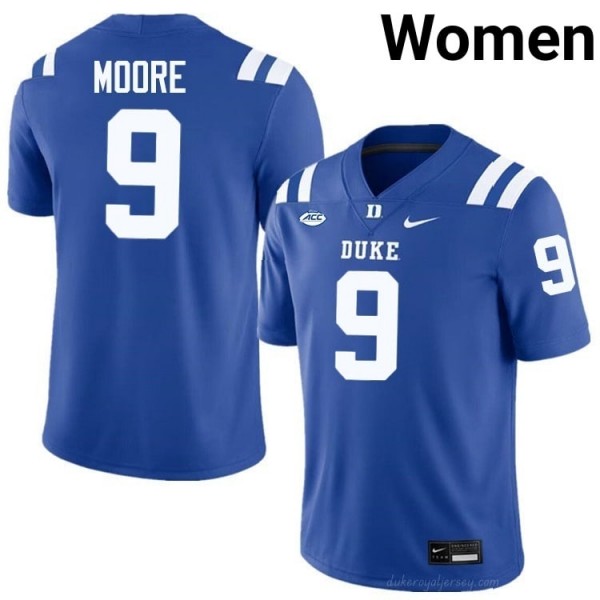 #9 Jaquez Moore Blue Devils Women Royal Football NCAA Jersey | Pro-Grade Stitched 75fGD3p2 - Classic Replica for Diehard Fans